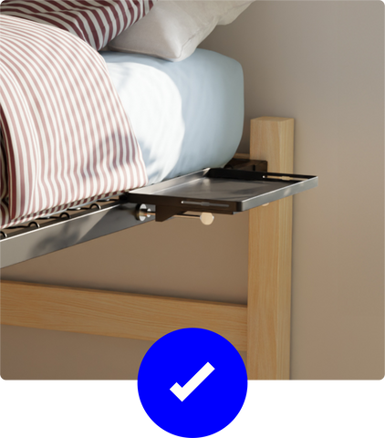 - Easy and Tool-Free Installation: Say goodbye to complicated assembly instructions and hello to simplicity. Our BedShelfie Bed Shelf Table is designed for hassle-free installation, so you can start using it right away. No need to grab your toolbox or decipher confusing manuals. Just slide and attach this versatile tray to the side of your bed, bunk bed, or even your couch.