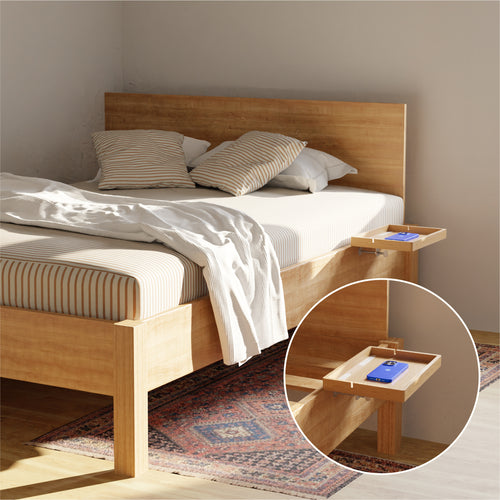 - Versatile Design Options: The BedShelfie bedside shelf boasts 7 stylish models, including Minimalist (13.75 x 9.5''), Original (13.75 x 9.5''), Essential bed caddy with cup holder (17 x 11.6''), and Plus (19.25 x 11.5''), which clamp onto bed frames with a rail. The Slide bedside shelf model is perfect for box spring beds and platform beds as an attachable under mattress table.